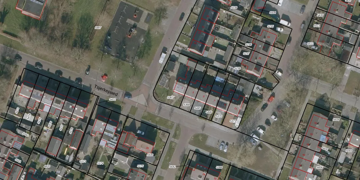 Het perceel waarop Tsjerkepaed 1 staat heeft een oppervlakte van 450 m². Dit is een groot perceel. De perceeloppervlakte wordt geregistreerd door het Kadaster. Gedetailleerde informatie over de maten van dit perceel kunt u vinden in het rapport Kadastrale kaart met maatvoering van Tsjerkepaed 1.