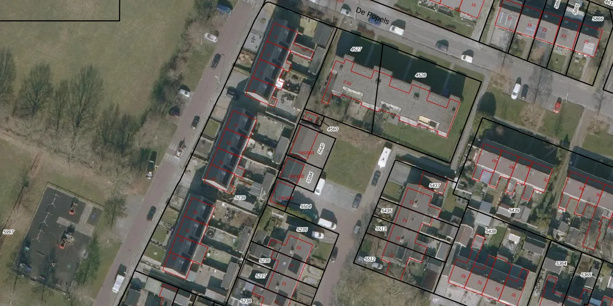 Gebruik de zoekbalk of klik op een perceel voor informatie over de adressen binnen dit perceel.