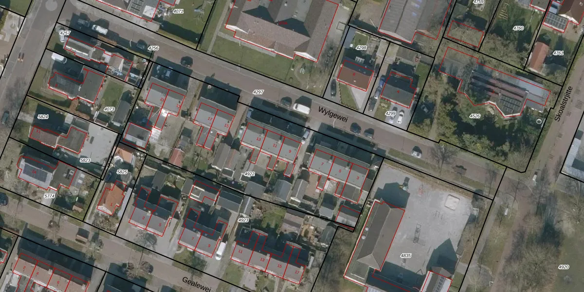 Het perceel waarop Wylgewei 9 staat heeft een oppervlakte van 2465 m². Dit is een zeer groot perceel. De perceeloppervlakte wordt geregistreerd door het Kadaster. Gedetailleerde informatie over de maten van dit perceel kunt u vinden in het rapport Kadastrale kaart met maatvoering van Wylgewei 9.