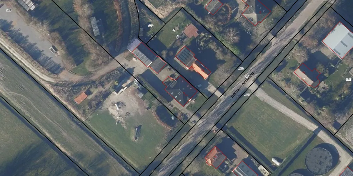 Het perceel waarop Bennemeersweg 17 staat heeft een oppervlakte van 1,9 ha. Dit is een zeer groot perceel. De perceeloppervlakte wordt geregistreerd door het Kadaster. Gedetailleerde informatie over de maten van dit perceel kunt u vinden in het rapport Kadastrale kaart met maatvoering van Bennemeersweg 17.