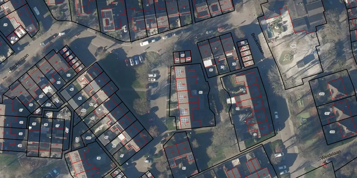 Het perceel waarop Beukenlaan 66 staat heeft een oppervlakte van 752 m². Dit is een groot perceel. De perceeloppervlakte wordt geregistreerd door het Kadaster. Gedetailleerde informatie over de maten van dit perceel kunt u vinden in het rapport Kadastrale kaart met maatvoering van Beukenlaan 66.