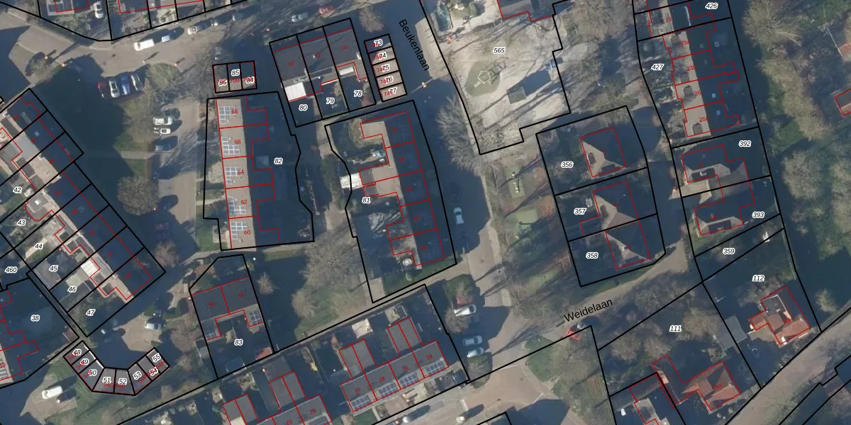 Het perceel waarop Beukenlaan 82 staat heeft een oppervlakte van 882 m². Dit is een groot perceel. De perceeloppervlakte wordt geregistreerd door het Kadaster. Gedetailleerde informatie over de maten van dit perceel kunt u vinden in het rapport Kadastrale kaart met maatvoering van Beukenlaan 82.