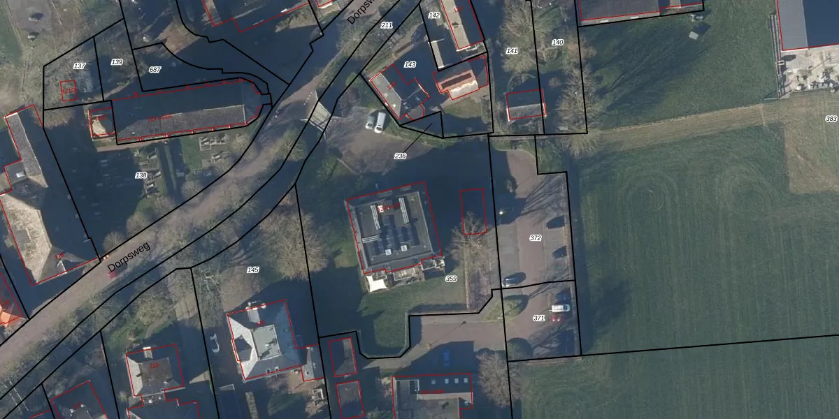 Het perceel waarop Dorpsweg 127-G staat heeft een oppervlakte van 2250 m². Dit is een zeer groot perceel. De perceeloppervlakte wordt geregistreerd door het Kadaster. Gedetailleerde informatie over de maten van dit perceel kunt u vinden in het rapport Kadastrale kaart met maatvoering van Dorpsweg 127-G.