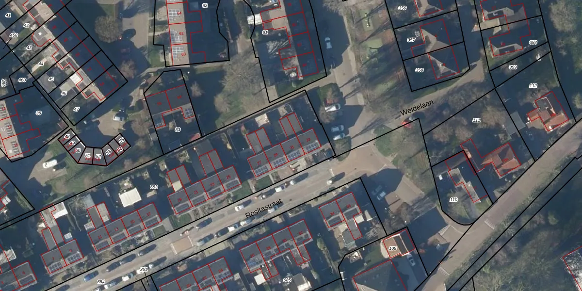Het perceel waarop Rositastraat 31 staat heeft een oppervlakte van 3315 m². Dit is een zeer groot perceel. De perceeloppervlakte wordt geregistreerd door het Kadaster. Gedetailleerde informatie over de maten van dit perceel kunt u vinden in het rapport Kadastrale kaart met maatvoering van Rositastraat 31.