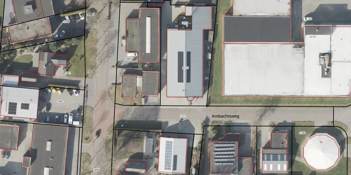 Het perceel waarop Ambachtsweg 5 staat heeft een oppervlakte van 1648 m². Dit is een zeer groot perceel. De perceeloppervlakte wordt geregistreerd door het Kadaster. Gedetailleerde informatie over de maten van dit perceel kunt u vinden in het rapport Kadastrale kaart met maatvoering van Ambachtsweg 5.