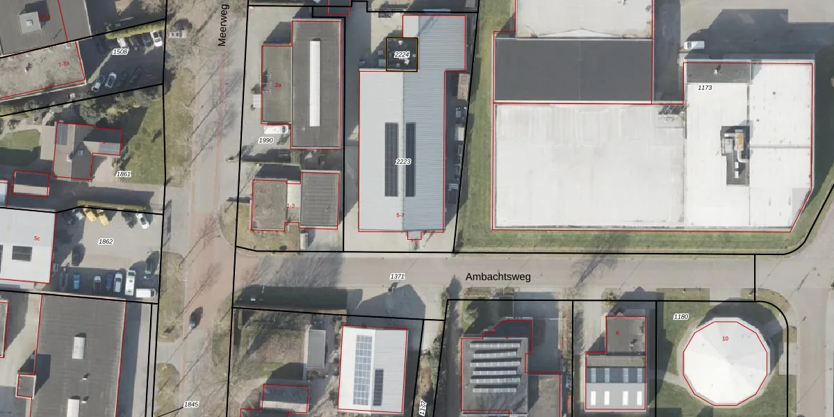 Het perceel waarop Ambachtsweg 7 staat heeft een oppervlakte van 1648 m². Dit is een zeer groot perceel. De perceeloppervlakte wordt geregistreerd door het Kadaster. Gedetailleerde informatie over de maten van dit perceel kunt u vinden in het rapport Kadastrale kaart met maatvoering van Ambachtsweg 7.