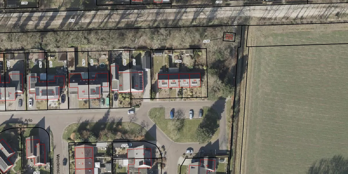 Het perceel waarop Arlo 58 staat heeft een oppervlakte van 903 m². Dit is een groot perceel. De perceeloppervlakte wordt geregistreerd door het Kadaster. Gedetailleerde informatie over de maten van dit perceel kunt u vinden in het rapport Kadastrale kaart met maatvoering van Arlo 58.