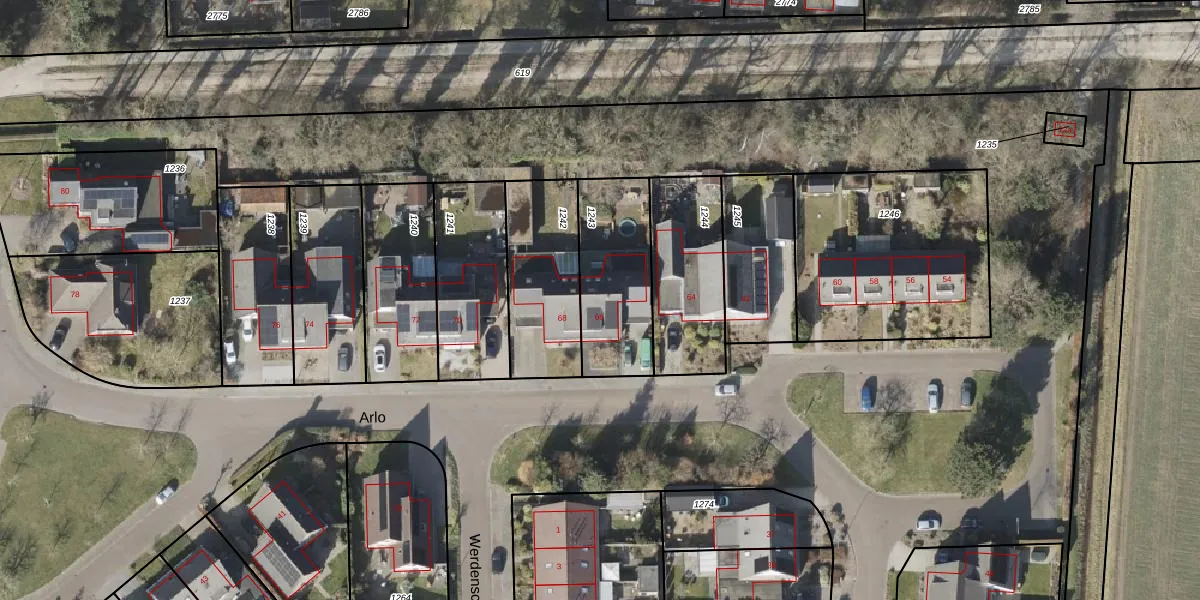 Arlo 66 is gelegen op kadastraal perceel VRI00V1243. Deze kadastrale aanduiding is uniek en wordt gebruikt door het Kadaster om eigendomsrechten en andere zakelijke rechten vast te leggen. Het perceel maakt onderdeel uit van de kadastrale gemeente Vries.