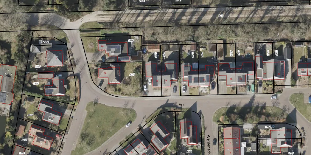 Arlo 76 is gelegen op kadastraal perceel VRI00V1238. Deze kadastrale aanduiding is uniek en wordt gebruikt door het Kadaster om eigendomsrechten en andere zakelijke rechten vast te leggen. Het perceel maakt onderdeel uit van de kadastrale gemeente Vries.