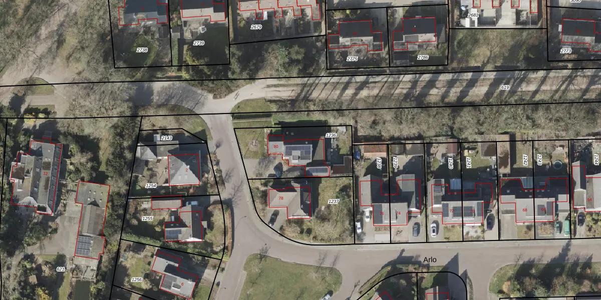 Het perceel waarop Arlo 80 staat heeft een oppervlakte van 632 m². Dit is een groot perceel. De perceeloppervlakte wordt geregistreerd door het Kadaster. Gedetailleerde informatie over de maten van dit perceel kunt u vinden in het rapport Kadastrale kaart met maatvoering van Arlo 80.