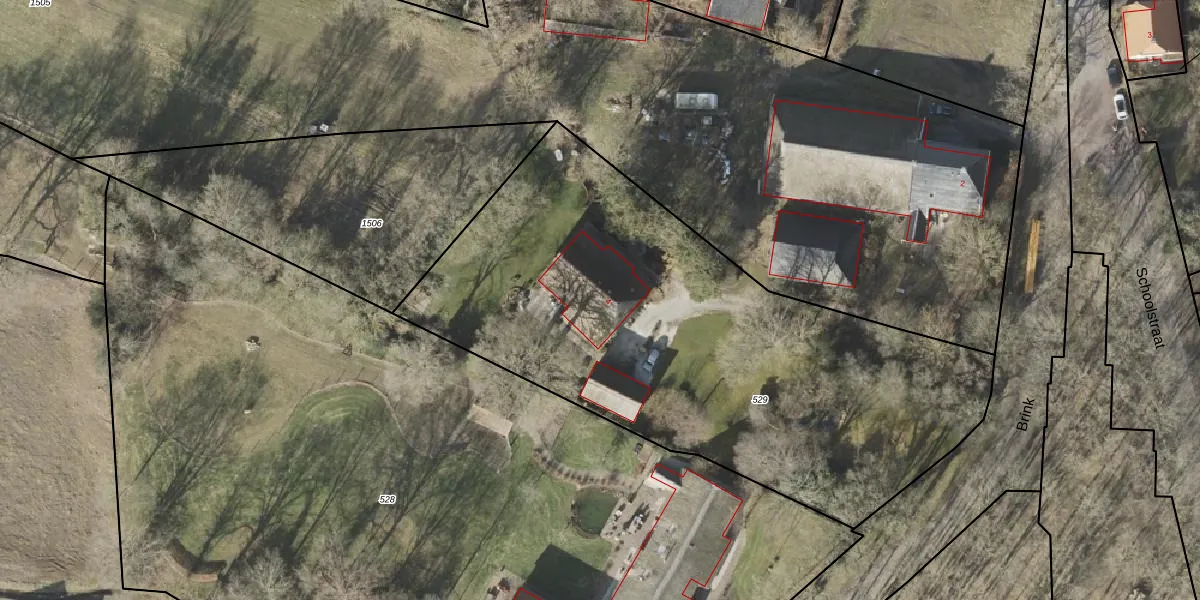 Het perceel waarop Brink 4 staat heeft een oppervlakte van 3040 m². Dit is een zeer groot perceel. De perceeloppervlakte wordt geregistreerd door het Kadaster. Gedetailleerde informatie over de maten van dit perceel kunt u vinden in het rapport Kadastrale kaart met maatvoering van Brink 4.