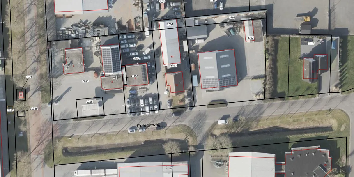Het perceel waarop Energieweg 5-a staat heeft een oppervlakte van 877 m². Dit is een groot perceel. De perceeloppervlakte wordt geregistreerd door het Kadaster. Gedetailleerde informatie over de maten van dit perceel kunt u vinden in het rapport Kadastrale kaart met maatvoering van Energieweg 5-a.
