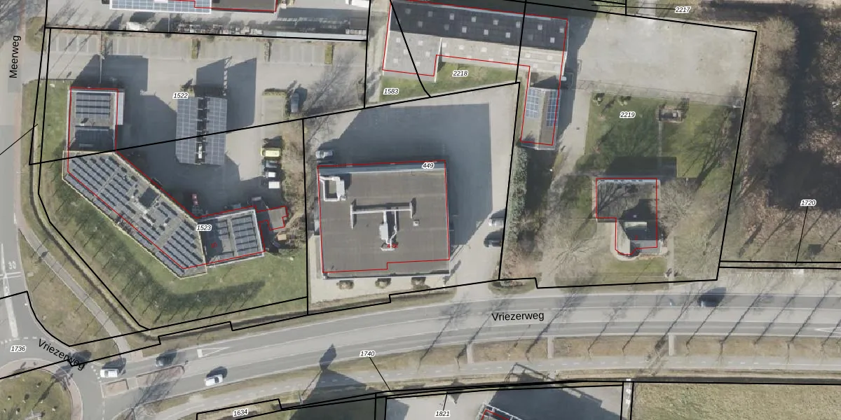Vriezerweg 8-c is gelegen op kadastraal perceel VRI00V449. Deze kadastrale aanduiding is uniek en wordt gebruikt door het Kadaster om eigendomsrechten en andere zakelijke rechten vast te leggen. Het perceel maakt onderdeel uit van de kadastrale gemeente Vries.