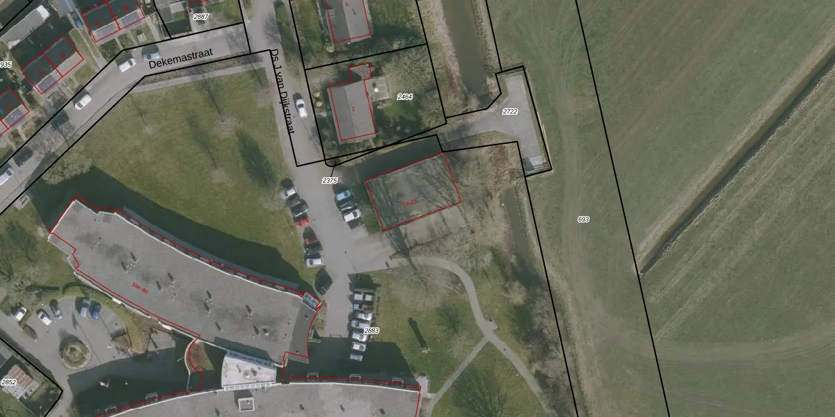 Ds J van Dijkstraat 2-B is gelegen op kadastraal perceel TJU00A2883. Deze kadastrale aanduiding is uniek en wordt gebruikt door het Kadaster om eigendomsrechten en andere zakelijke rechten vast te leggen. Het perceel maakt onderdeel uit van de kadastrale gemeente Tjum.