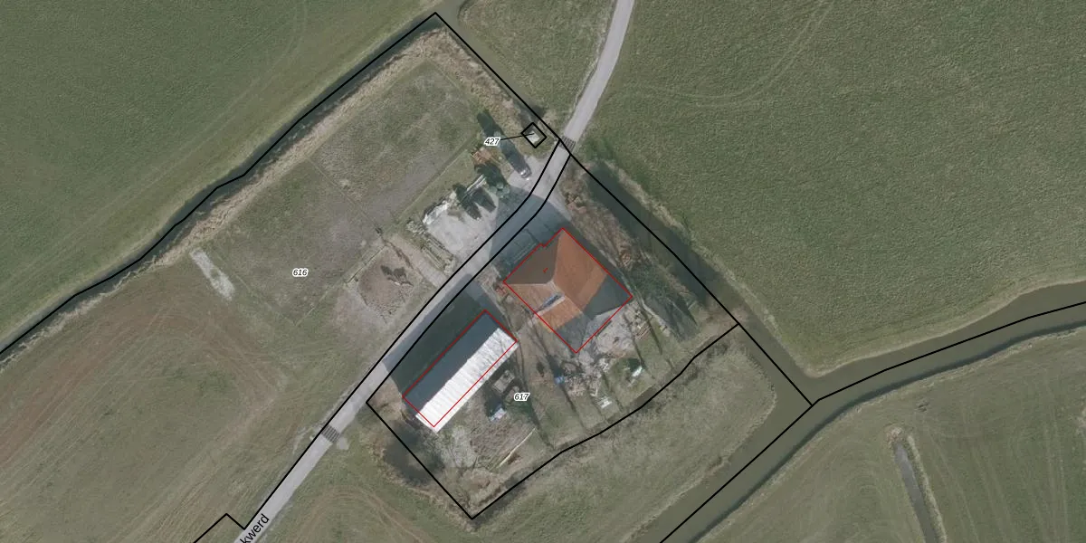 Het perceel waarop Laakwerd 1 staat heeft een oppervlakte van 2173 m². Dit is een zeer groot perceel. De perceeloppervlakte wordt geregistreerd door het Kadaster. Gedetailleerde informatie over de maten van dit perceel kunt u vinden in het rapport Kadastrale kaart met maatvoering van Laakwerd 1.