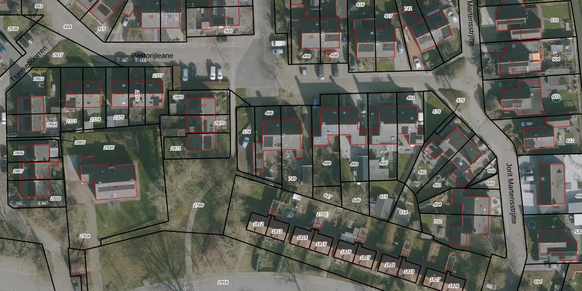 Pastorijleane 9 is gelegen op kadastraal perceel TJU00D749. Deze kadastrale aanduiding is uniek en wordt gebruikt door het Kadaster om eigendomsrechten en andere zakelijke rechten vast te leggen. Het perceel maakt onderdeel uit van de kadastrale gemeente Tjum.