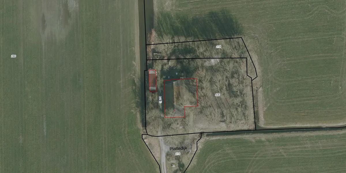 Het perceel waarop Plattedijk 2 staat heeft een oppervlakte van 2656 m². Dit is een zeer groot perceel. De perceeloppervlakte wordt geregistreerd door het Kadaster. Gedetailleerde informatie over de maten van dit perceel kunt u vinden in het rapport Kadastrale kaart met maatvoering van Plattedijk 2.