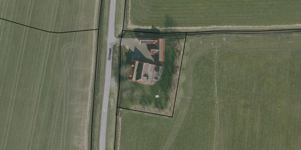 Slotwei 1 is gelegen op kadastraal perceel TJU00G90. Deze kadastrale aanduiding is uniek en wordt gebruikt door het Kadaster om eigendomsrechten en andere zakelijke rechten vast te leggen. Het perceel maakt onderdeel uit van de kadastrale gemeente Tjum.