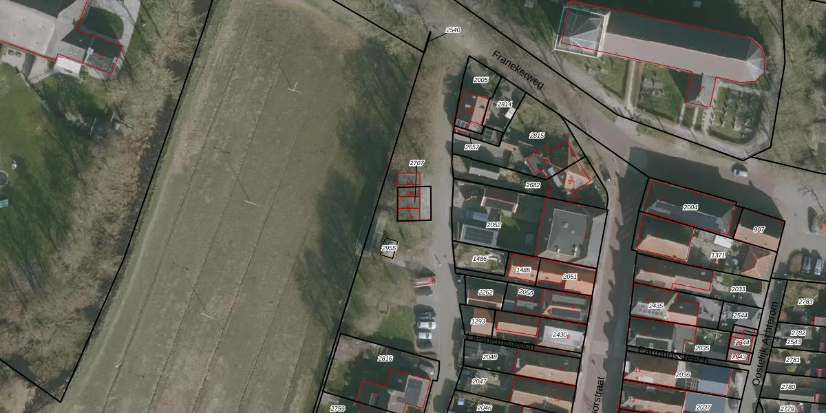 Het adres is gelegen op perceel 2707 in de sectie A en de kadastrale gemeente Tjum. De kadastrale aanduiding is aldus TJU00-A-2707. Het perceel is kleiner dan gemiddeld in Tjum. Het perceel is 66 m² groot, terwijl het gemiddelde ligt op 1,2 ha. De grootste perceeloppervlakte in de kadastrale gemeente is 33,0 ha. De kleinste oppervlakte bedraagt 1 m². Op het perceel zijn 3 adressen aanwezig. De huidige grenzen van het perceel zijn digitaal in de Basisregistratie Kadaster (BRK) geregistreerd op 03-03-1999.