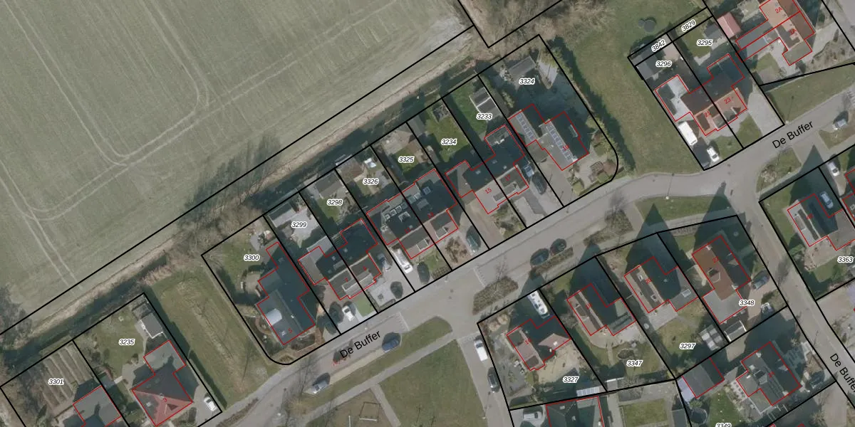 Het perceel waarop De Buffer 13 staat heeft een oppervlakte van 355 m². Dit is een groot perceel. De perceeloppervlakte wordt geregistreerd door het Kadaster. Gedetailleerde informatie over de maten van dit perceel kunt u vinden in het rapport Kadastrale kaart met maatvoering van De Buffer 13.