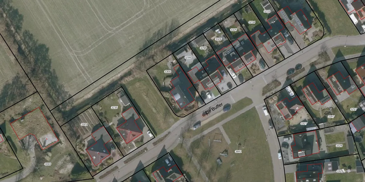 Het perceel waarop De Buffer 5 staat heeft een oppervlakte van 561 m². Dit is een groot perceel. De perceeloppervlakte wordt geregistreerd door het Kadaster. Gedetailleerde informatie over de maten van dit perceel kunt u vinden in het rapport Kadastrale kaart met maatvoering van De Buffer 5.