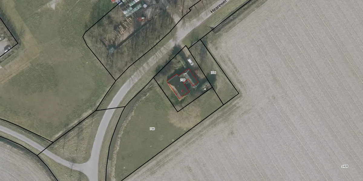 Het perceel waarop Hearewei 52 staat heeft een oppervlakte van 605 m². Dit is een groot perceel. De perceeloppervlakte wordt geregistreerd door het Kadaster. Gedetailleerde informatie over de maten van dit perceel kunt u vinden in het rapport Kadastrale kaart met maatvoering van Hearewei 52.