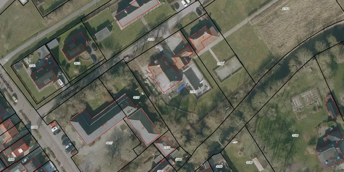 Het perceel waarop Stasjonswei 2 staat heeft een oppervlakte van 2280 m². Dit is een zeer groot perceel. De perceeloppervlakte wordt geregistreerd door het Kadaster. Gedetailleerde informatie over de maten van dit perceel kunt u vinden in het rapport Kadastrale kaart met maatvoering van Stasjonswei 2.