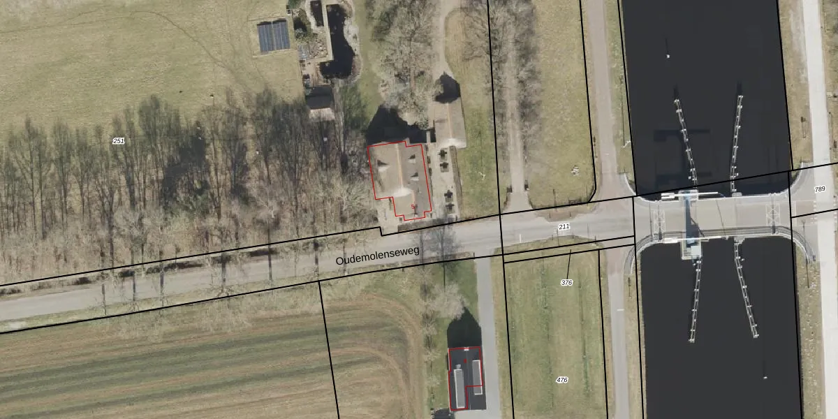 Het perceel waarop Oudemolenseweg 5 staat heeft een oppervlakte van 1,2 ha. Dit is een zeer groot perceel. De perceeloppervlakte wordt geregistreerd door het Kadaster. Gedetailleerde informatie over de maten van dit perceel kunt u vinden in het rapport Kadastrale kaart met maatvoering van Oudemolenseweg 5.
