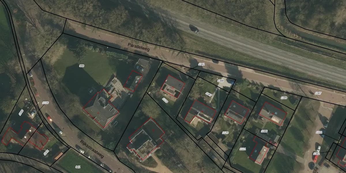 Het perceel waarop Parallelweg 21 staat heeft een oppervlakte van 635 m². Dit is een groot perceel. De perceeloppervlakte wordt geregistreerd door het Kadaster. Gedetailleerde informatie over de maten van dit perceel kunt u vinden in het rapport Kadastrale kaart met maatvoering van Parallelweg 21.