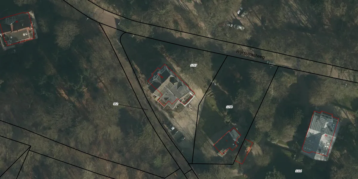 Het perceel waarop Rijksstraatweg 48-b staat heeft een oppervlakte van 2070 m². Dit is een zeer groot perceel. De perceeloppervlakte wordt geregistreerd door het Kadaster. Gedetailleerde informatie over de maten van dit perceel kunt u vinden in het rapport Kadastrale kaart met maatvoering van Rijksstraatweg 48-b.