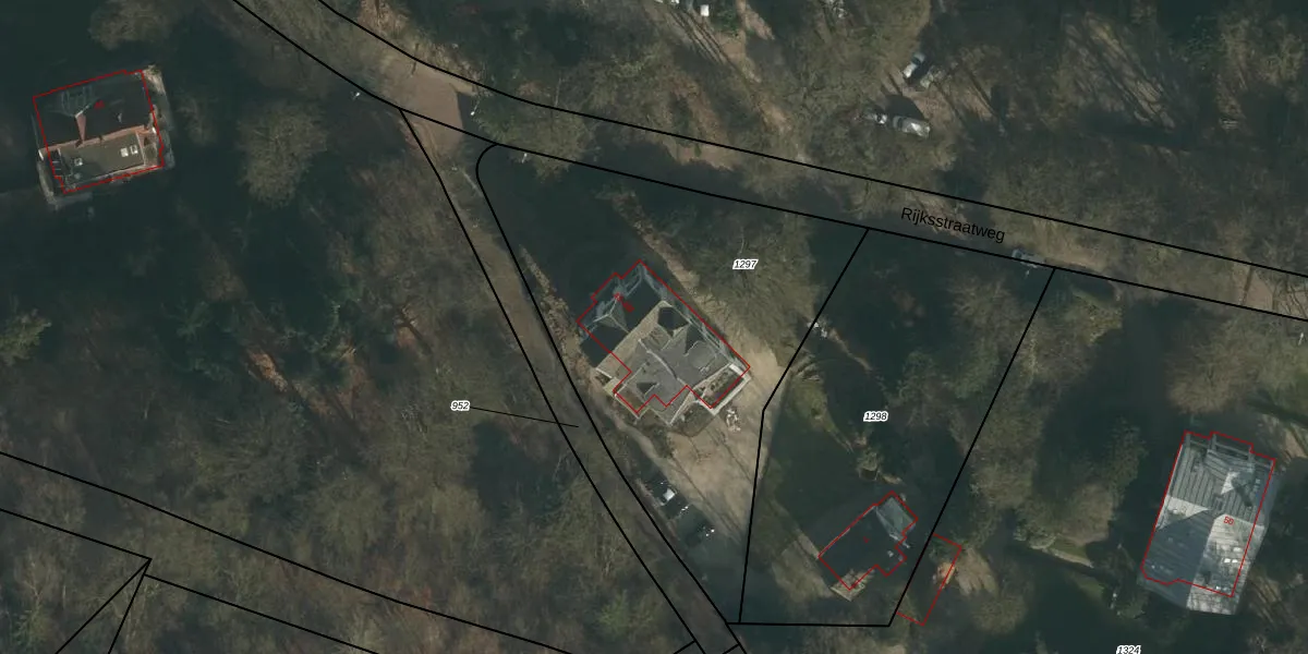 Het perceel waarop Rijksstraatweg 48-d staat heeft een oppervlakte van 2070 m². Dit is een zeer groot perceel. De perceeloppervlakte wordt geregistreerd door het Kadaster. Gedetailleerde informatie over de maten van dit perceel kunt u vinden in het rapport Kadastrale kaart met maatvoering van Rijksstraatweg 48-d.