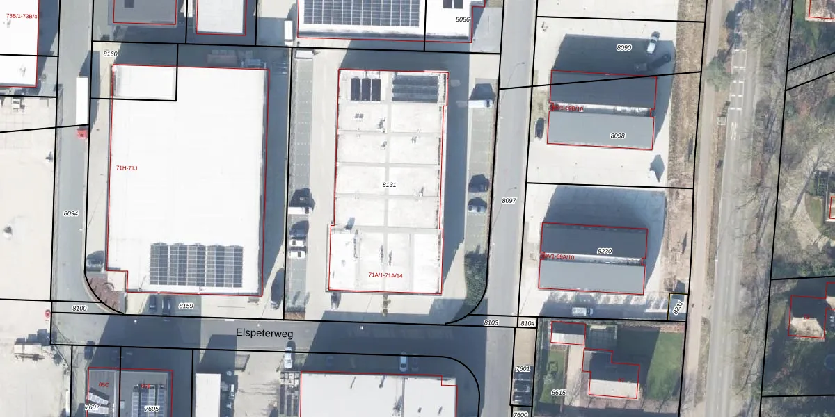 Het perceel waarop Elspeterweg 71-A-5 staat heeft een oppervlakte van 3192 m². Dit is een zeer groot perceel. De perceeloppervlakte wordt geregistreerd door het Kadaster. Gedetailleerde informatie over de maten van dit perceel kunt u vinden in het rapport Kadastrale kaart met maatvoering van Elspeterweg 71-A-5.