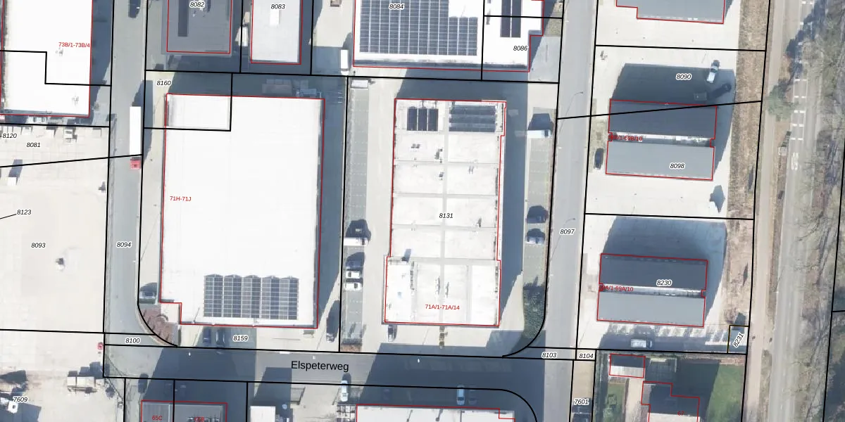 Het perceel waarop Elspeterweg 71-A-13 staat heeft een oppervlakte van 3192 m². Dit is een zeer groot perceel. De perceeloppervlakte wordt geregistreerd door het Kadaster. Gedetailleerde informatie over de maten van dit perceel kunt u vinden in het rapport Kadastrale kaart met maatvoering van Elspeterweg 71-A-13.