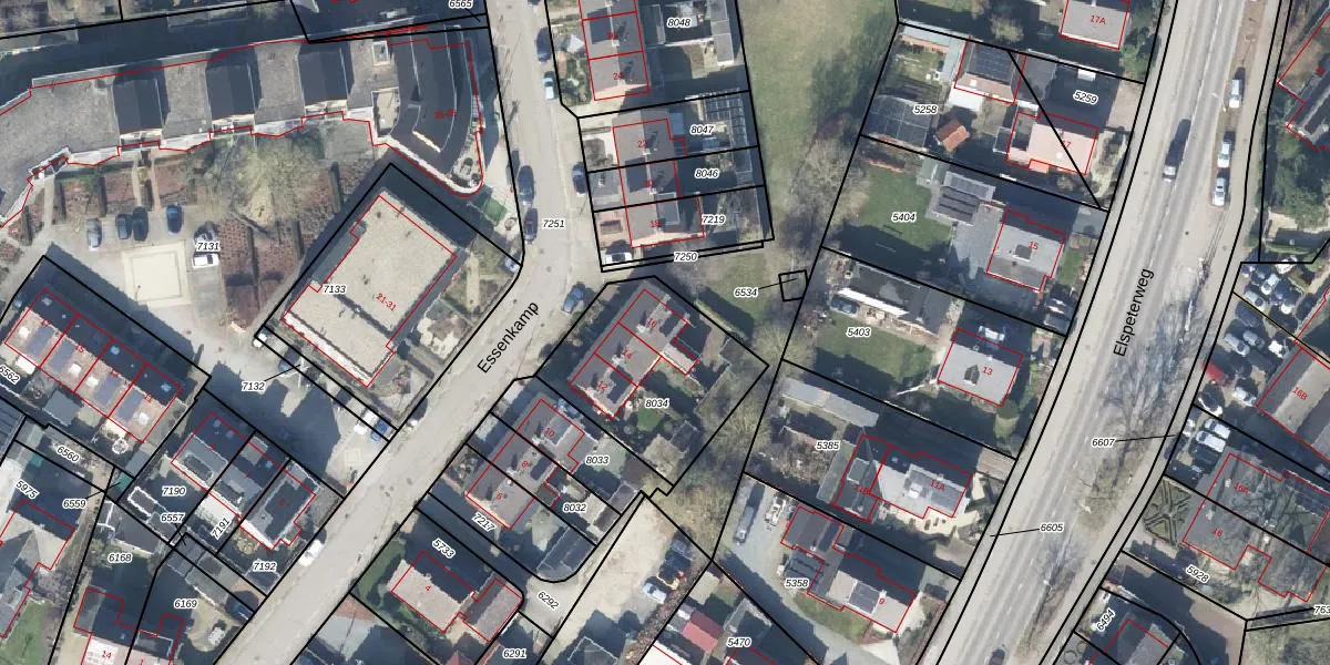 Het perceel waarop Essenkamp 16 staat heeft een oppervlakte van 602 m². Dit is een groot perceel. De perceeloppervlakte wordt geregistreerd door het Kadaster. Gedetailleerde informatie over de maten van dit perceel kunt u vinden in het rapport Kadastrale kaart met maatvoering van Essenkamp 16.