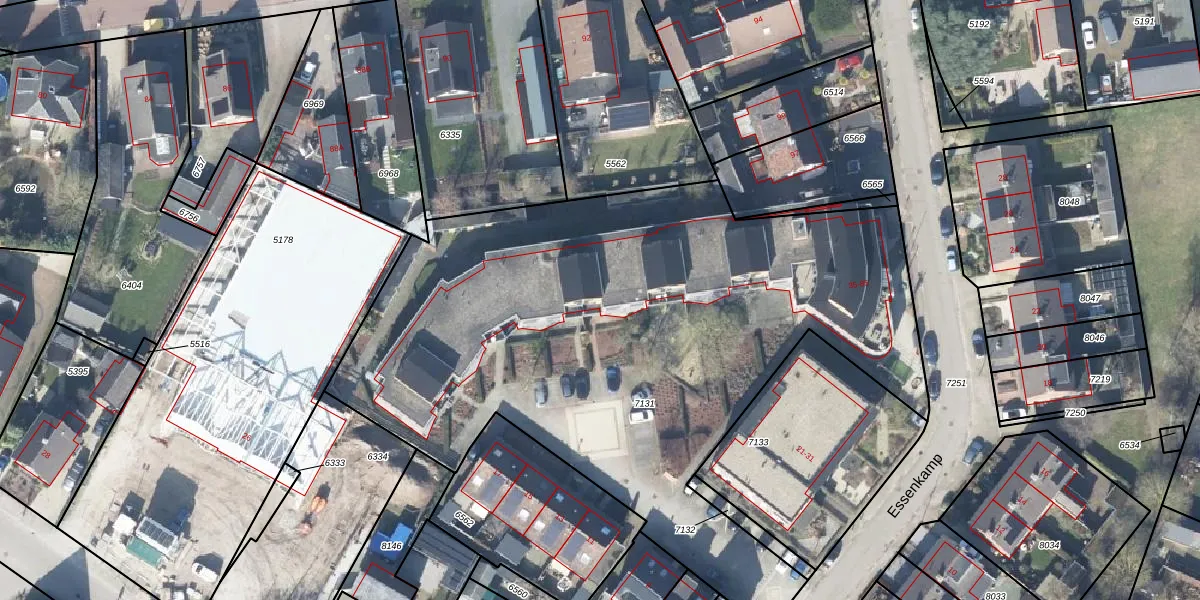 Het perceel waarop Essenkamp 49 staat heeft een oppervlakte van 3704 m². Dit is een zeer groot perceel. De perceeloppervlakte wordt geregistreerd door het Kadaster. Gedetailleerde informatie over de maten van dit perceel kunt u vinden in het rapport Kadastrale kaart met maatvoering van Essenkamp 49.