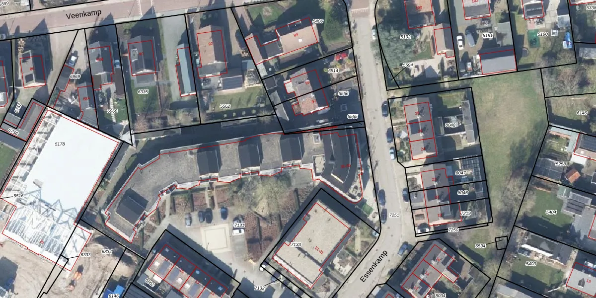 Het perceel waarop Essenkamp 67 staat heeft een oppervlakte van 3704 m². Dit is een zeer groot perceel. De perceeloppervlakte wordt geregistreerd door het Kadaster. Gedetailleerde informatie over de maten van dit perceel kunt u vinden in het rapport Kadastrale kaart met maatvoering van Essenkamp 67.