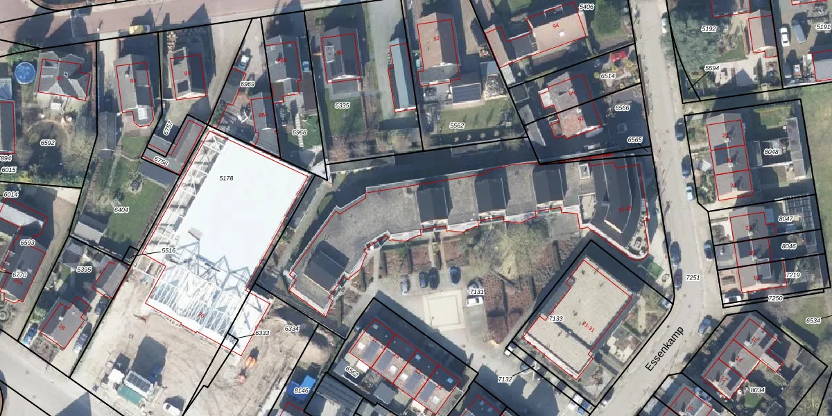 Het perceel waarop Essenkamp 77 staat heeft een oppervlakte van 3704 m². Dit is een zeer groot perceel. De perceeloppervlakte wordt geregistreerd door het Kadaster. Gedetailleerde informatie over de maten van dit perceel kunt u vinden in het rapport Kadastrale kaart met maatvoering van Essenkamp 77.