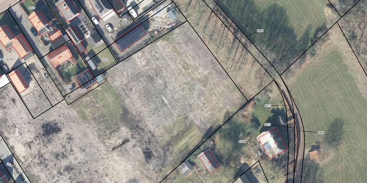 Het perceel waarop Huiskamp 17 staat heeft een oppervlakte van 8419 m². Dit is een zeer groot perceel. De perceeloppervlakte wordt geregistreerd door het Kadaster. Gedetailleerde informatie over de maten van dit perceel kunt u vinden in het rapport Kadastrale kaart met maatvoering van Huiskamp 17.