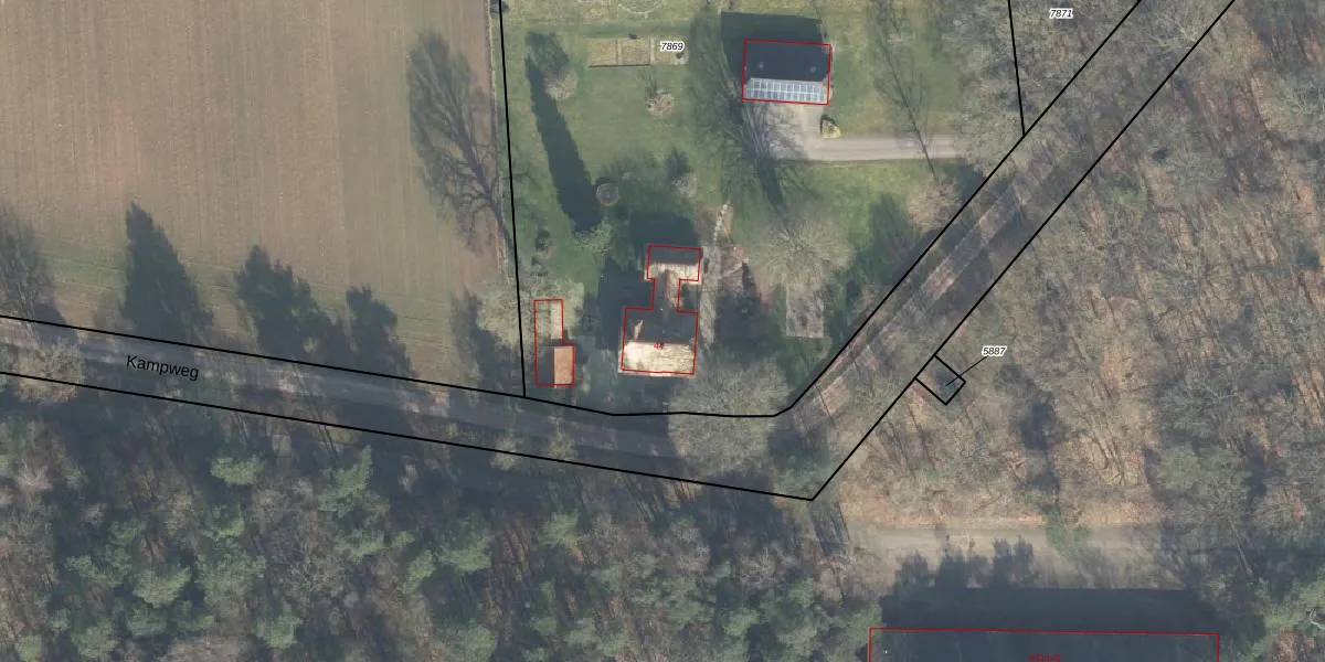 Het perceel waarop Kampweg 44 staat heeft een oppervlakte van 4575 m². Dit is een zeer groot perceel. De perceeloppervlakte wordt geregistreerd door het Kadaster. Gedetailleerde informatie over de maten van dit perceel kunt u vinden in het rapport Kadastrale kaart met maatvoering van Kampweg 44.