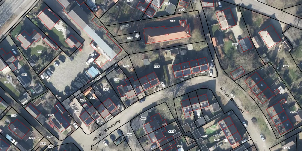 Het perceel waarop Meester Boelenweg 38 staat heeft een oppervlakte van 1292 m². Dit is een zeer groot perceel. De perceeloppervlakte wordt geregistreerd door het Kadaster. Gedetailleerde informatie over de maten van dit perceel kunt u vinden in het rapport Kadastrale kaart met maatvoering van Meester Boelenweg 38.