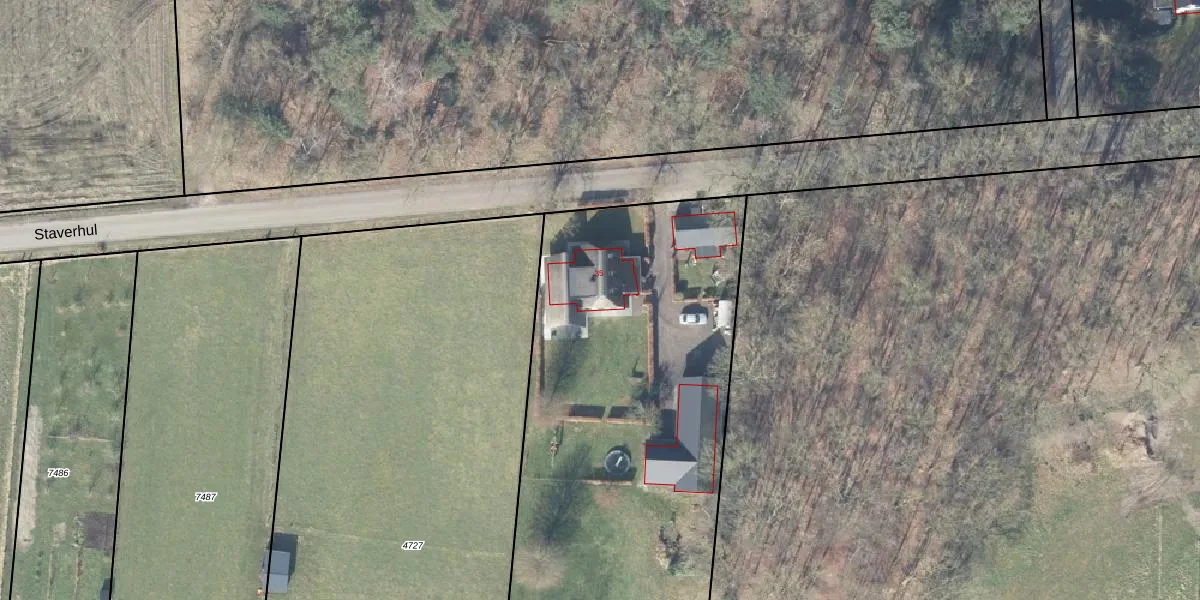 Het perceel waarop Staverhul 35 staat heeft een oppervlakte van 4870 m². Dit is een zeer groot perceel. De perceeloppervlakte wordt geregistreerd door het Kadaster. Gedetailleerde informatie over de maten van dit perceel kunt u vinden in het rapport Kadastrale kaart met maatvoering van Staverhul 35.