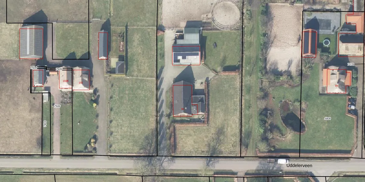 Het perceel waarop Uddelerveen 98 staat heeft een oppervlakte van 1,2 ha. Dit is een zeer groot perceel. De perceeloppervlakte wordt geregistreerd door het Kadaster. Gedetailleerde informatie over de maten van dit perceel kunt u vinden in het rapport Kadastrale kaart met maatvoering van Uddelerveen 98.