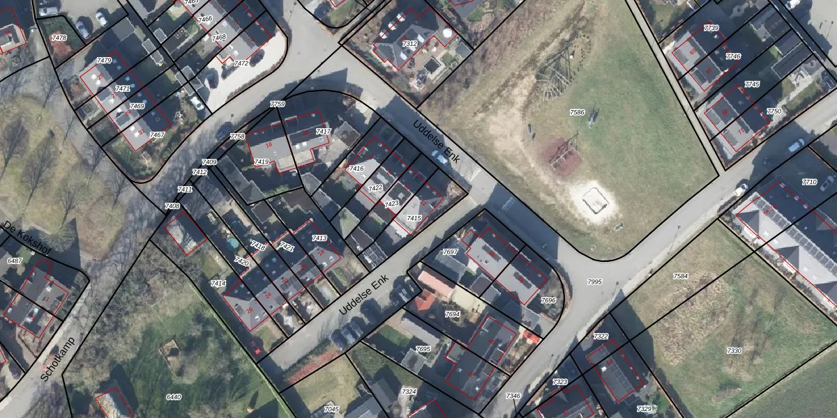 Uddelse Enk 12 is gelegen op kadastraal perceel APD01A7415. Deze kadastrale aanduiding is uniek en wordt gebruikt door het Kadaster om eigendomsrechten en andere zakelijke rechten vast te leggen. Het perceel maakt onderdeel uit van de kadastrale gemeente Apeldoorn.