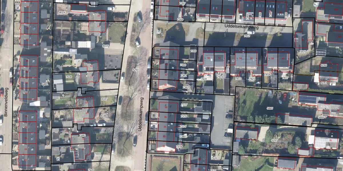 Het perceel waarop Uddelsekampweg 40 staat heeft een oppervlakte van 184 m². Dit is een middelgroot perceel. De perceeloppervlakte wordt geregistreerd door het Kadaster. Gedetailleerde informatie over de maten van dit perceel kunt u vinden in het rapport Kadastrale kaart met maatvoering van Uddelsekampweg 40.