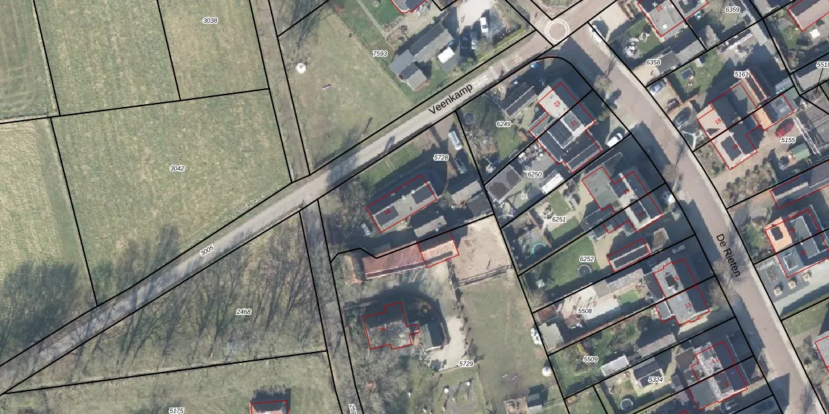 Het perceel waarop Veenkamp 56 staat heeft een oppervlakte van 855 m². Dit is een groot perceel. De perceeloppervlakte wordt geregistreerd door het Kadaster. Gedetailleerde informatie over de maten van dit perceel kunt u vinden in het rapport Kadastrale kaart met maatvoering van Veenkamp 56.