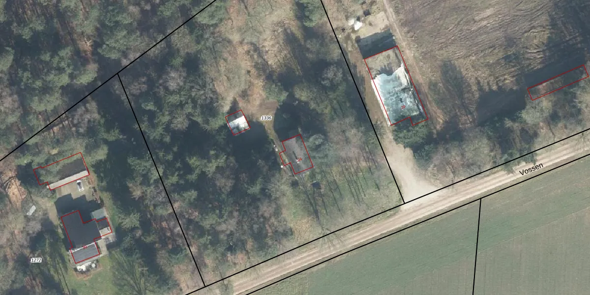 Het perceel waarop Vossen 24 staat heeft een oppervlakte van 6330 m². Dit is een zeer groot perceel. De perceeloppervlakte wordt geregistreerd door het Kadaster. Gedetailleerde informatie over de maten van dit perceel kunt u vinden in het rapport Kadastrale kaart met maatvoering van Vossen 24.