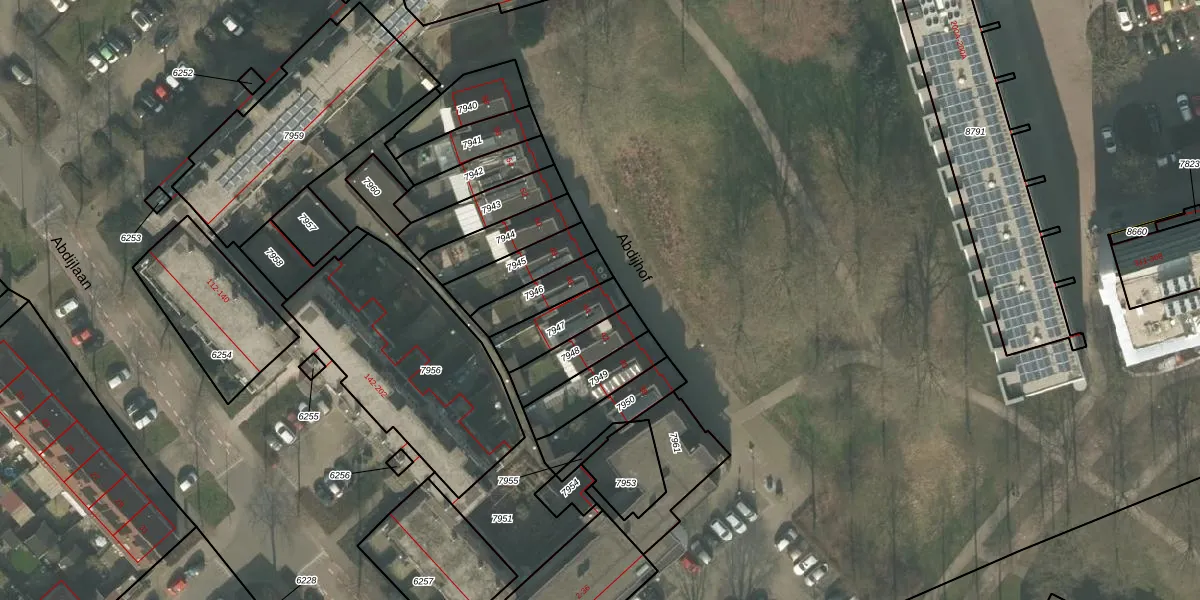 Het perceel waarop Abdijhof 44 staat heeft een oppervlakte van 142 m². Dit is een middelgroot perceel. De perceeloppervlakte wordt geregistreerd door het Kadaster. Gedetailleerde informatie over de maten van dit perceel kunt u vinden in het rapport Kadastrale kaart met maatvoering van Abdijhof 44.