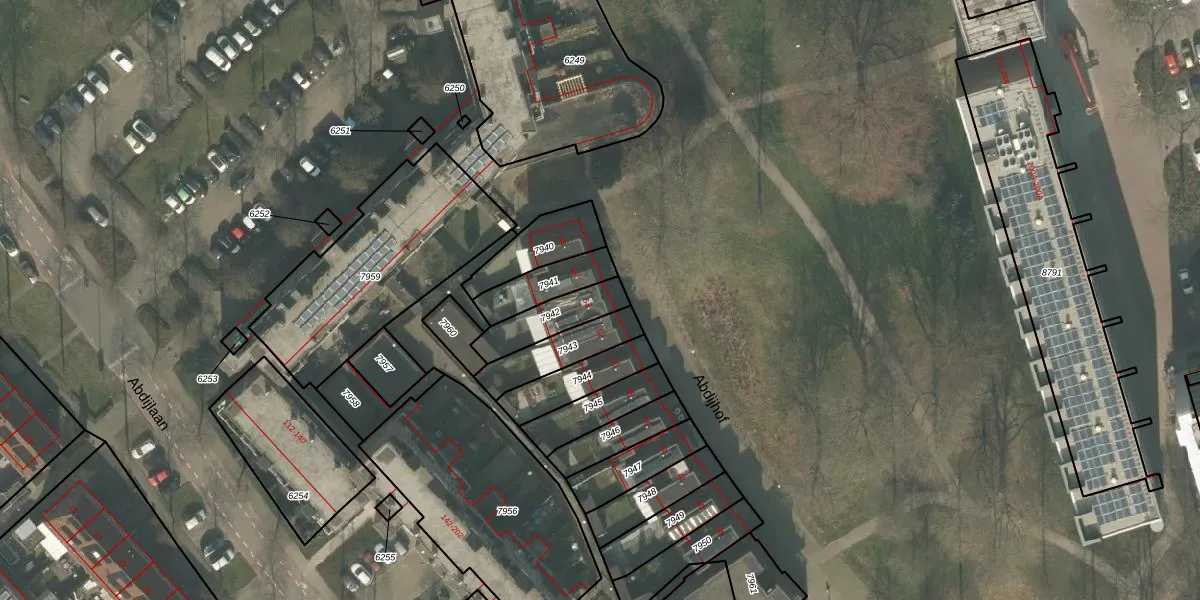 Het perceel waarop Abdijhof 54 staat heeft een oppervlakte van 145 m². Dit is een middelgroot perceel. De perceeloppervlakte wordt geregistreerd door het Kadaster. Gedetailleerde informatie over de maten van dit perceel kunt u vinden in het rapport Kadastrale kaart met maatvoering van Abdijhof 54.