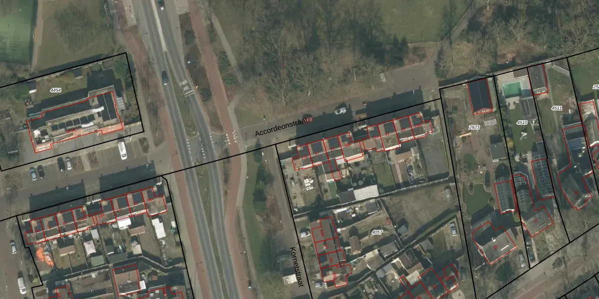 Het perceel waarop Accordeonstraat 17-A staat heeft een oppervlakte van 4219 m². Dit is een zeer groot perceel. De perceeloppervlakte wordt geregistreerd door het Kadaster. Gedetailleerde informatie over de maten van dit perceel kunt u vinden in het rapport Kadastrale kaart met maatvoering van Accordeonstraat 17-A.