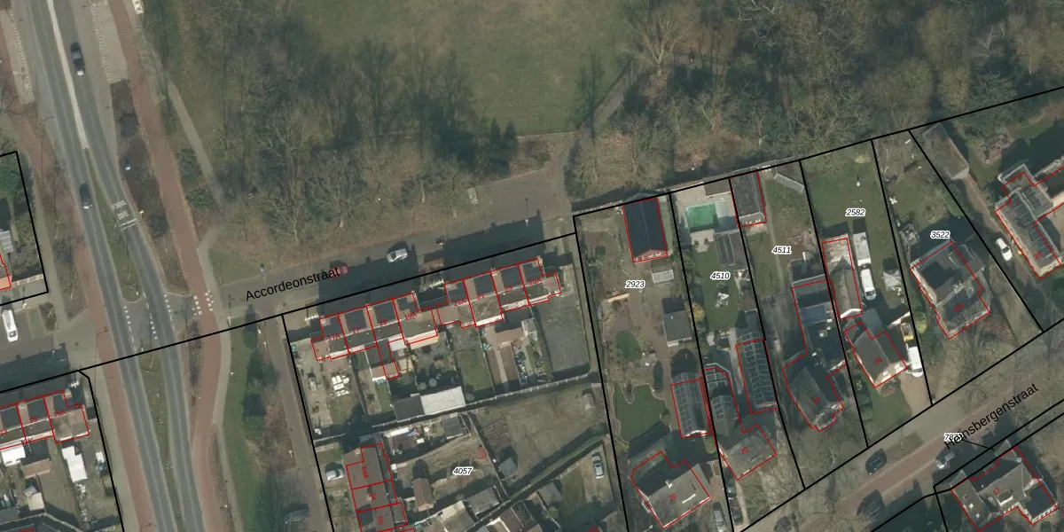 Het perceel waarop Accordeonstraat 23-A staat heeft een oppervlakte van 4219 m². Dit is een zeer groot perceel. De perceeloppervlakte wordt geregistreerd door het Kadaster. Gedetailleerde informatie over de maten van dit perceel kunt u vinden in het rapport Kadastrale kaart met maatvoering van Accordeonstraat 23-A.